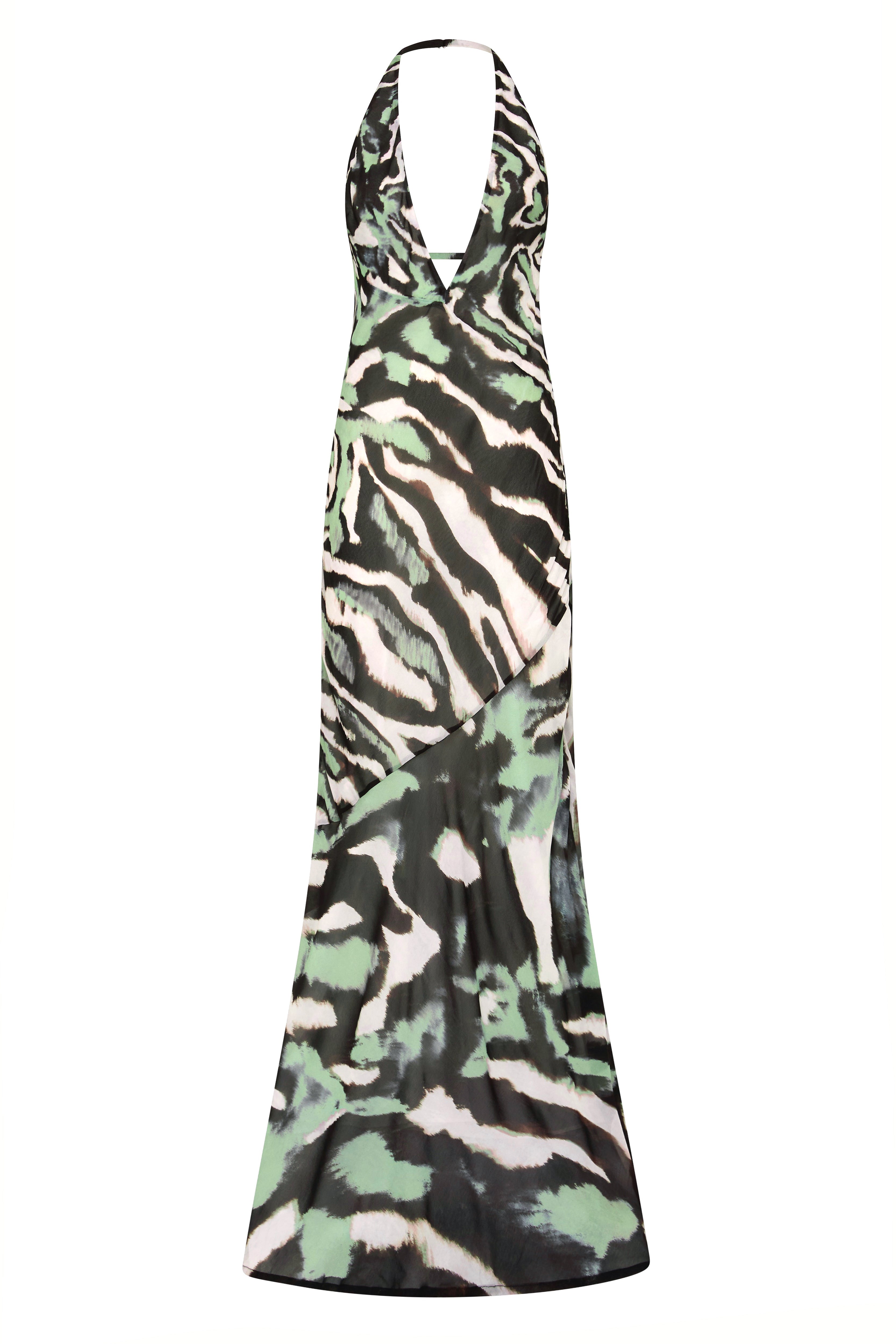 The Leni Maxi is crafted from a semi-sheer georgette viscose in our exclusive Zebra print. Cut on the bias to softly skim the body, it features a deep V neckline, low cowl back and adjustable back strap for a flattering, sculpted fit. Effortless and refined, with just the right amount of edge.